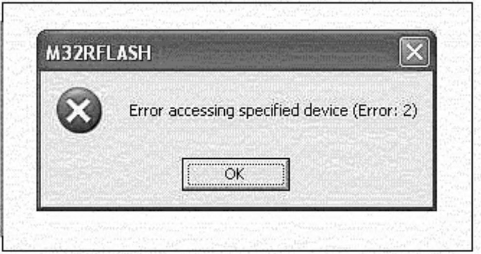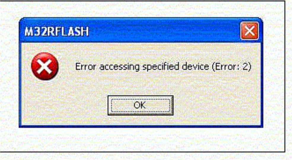 If you receive the error shown or one similar to it, click "OK" and proceed to the next step. The program will continue to function. When the correct COM port is selected during the reflash procedure, this error will not come up again.