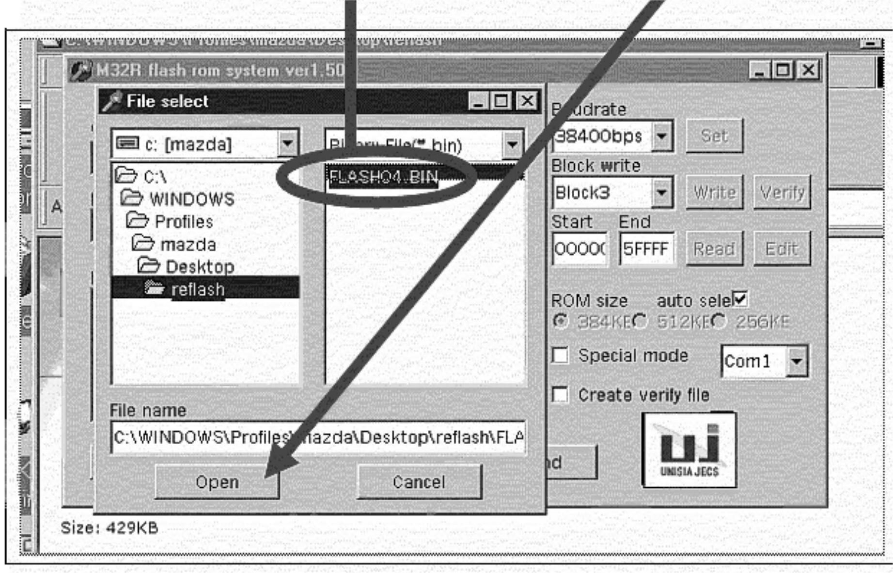9. Select the program file "FLASH04.BIN", then select "Open".