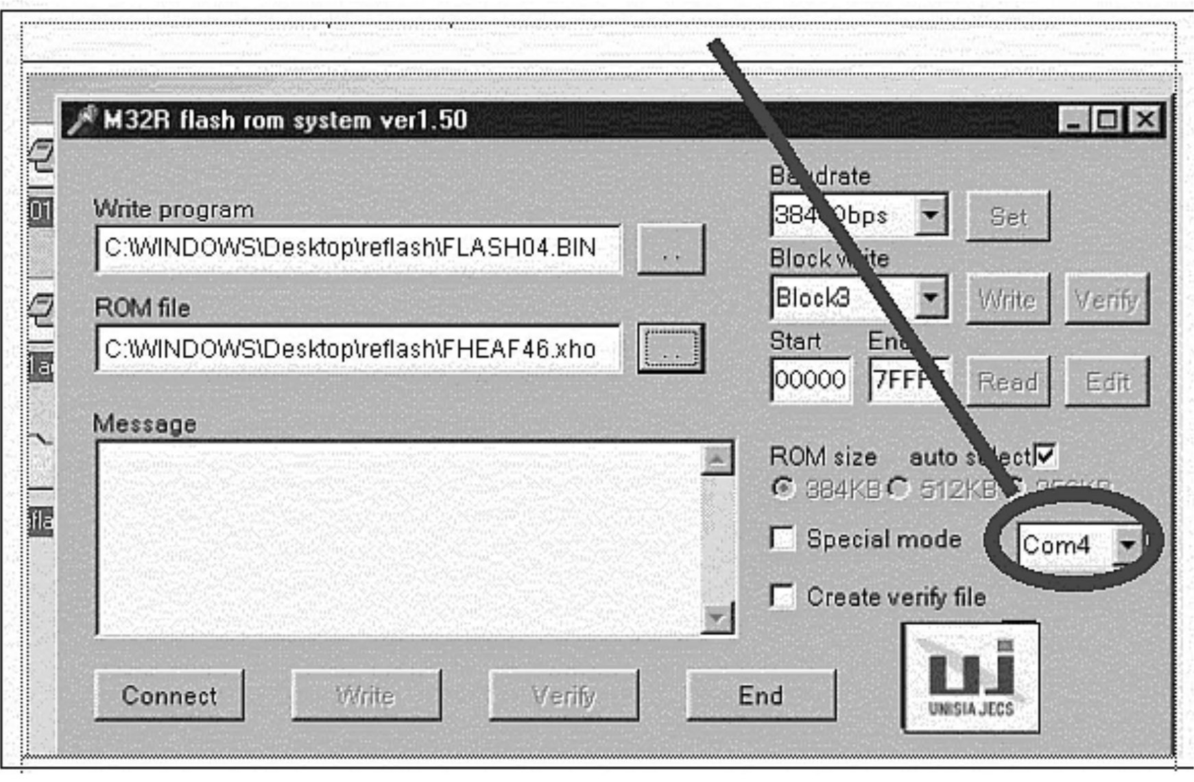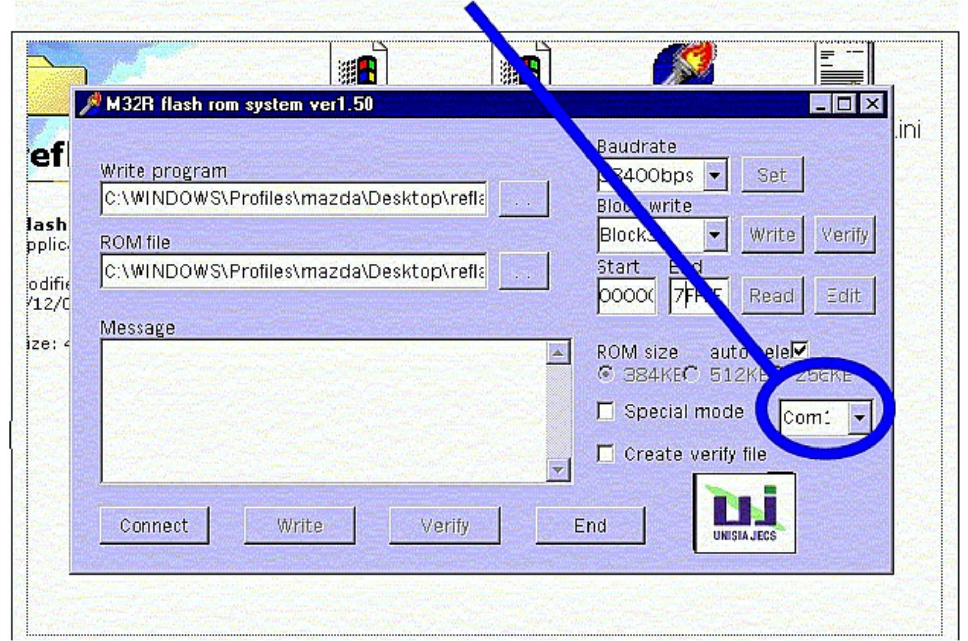 13. Select the correct Com port for your type of PC from the drop down menu: