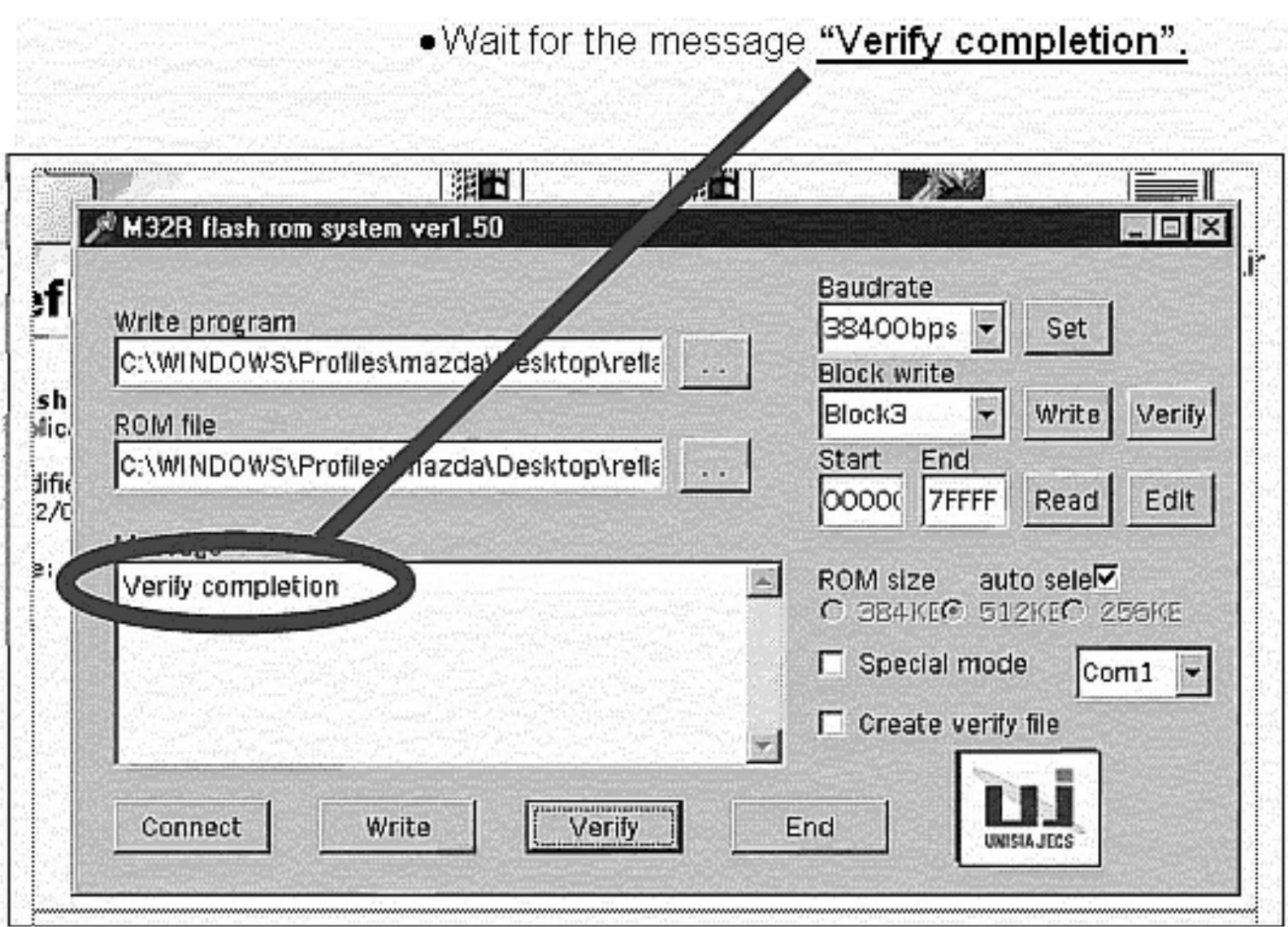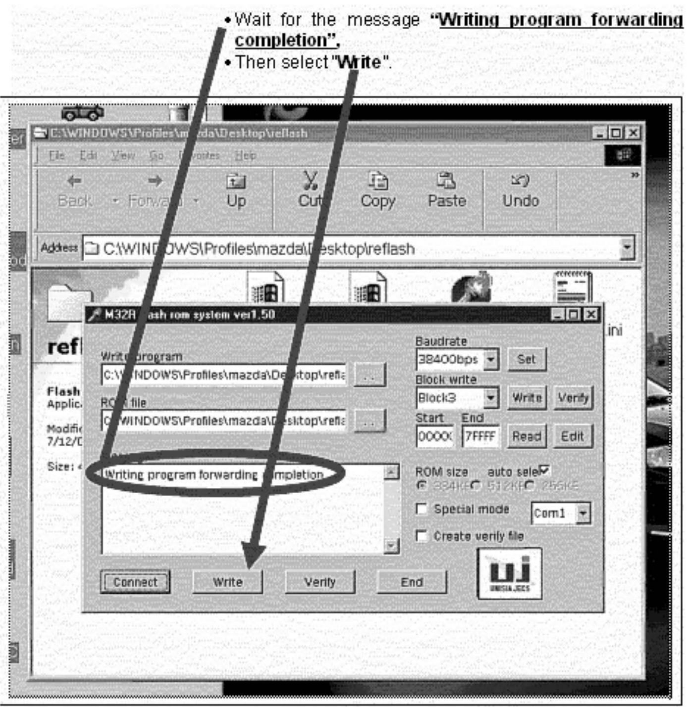 If the message "Writing program forwarding failure" is displayed in RED text, turn the Reflash Cube "OFF" and repeat Step 16.