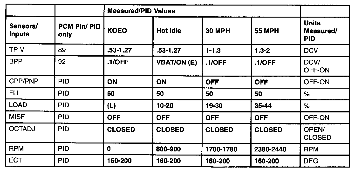 PID/Data Monitor Reference Value (2.0L M/T) Part 1: