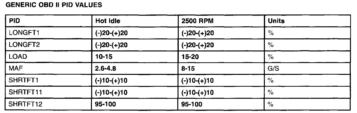 PID/Data Monitor Reference Value (2.0L M/T) Part 1:
