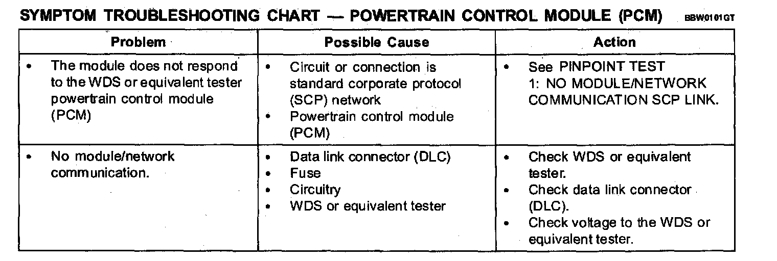 Symptom Troubleshooting Chart - Powertrain Control Module (PCM):