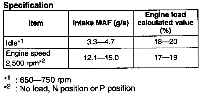 NOTE: The scan tool shows the MAF rate and load value.