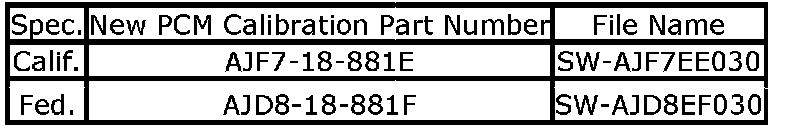 ^ Please be aware that PCM calibration part numbers and file names listed in any Service Bulletin may change due to future releases of PDS/IDS software, and additional revisions made to those calibrations for service related concerns.