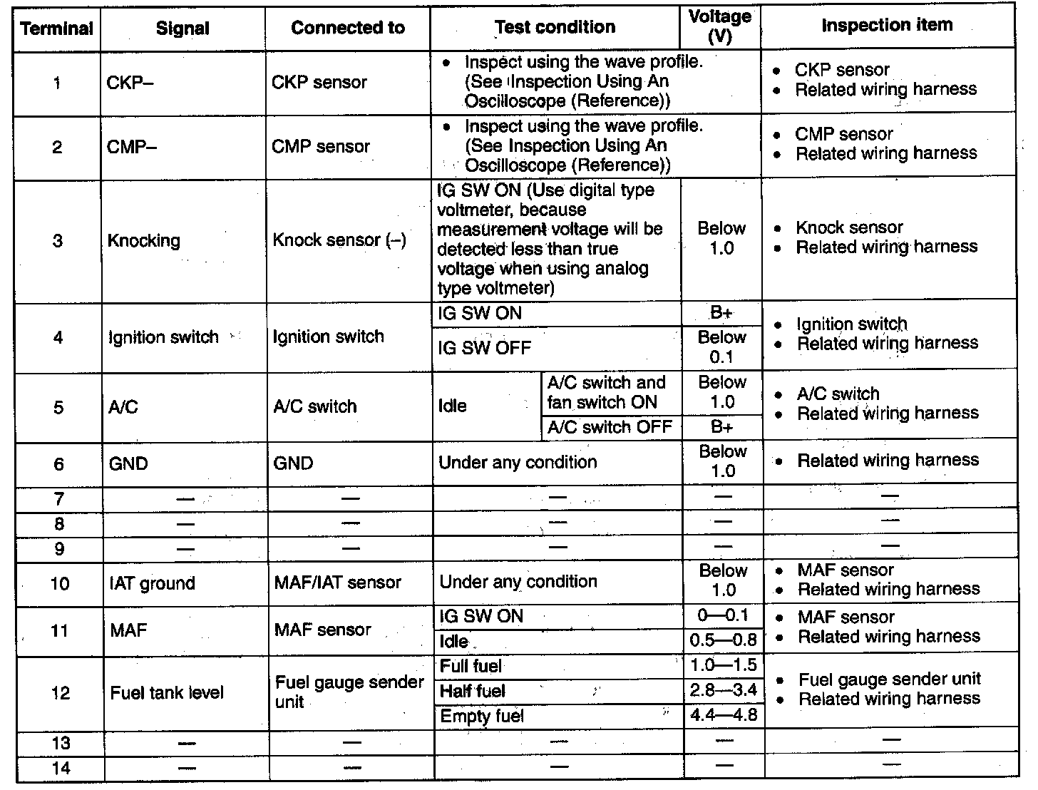 Terminal Voltage Table (Reference) - Terminals (1 - 14):