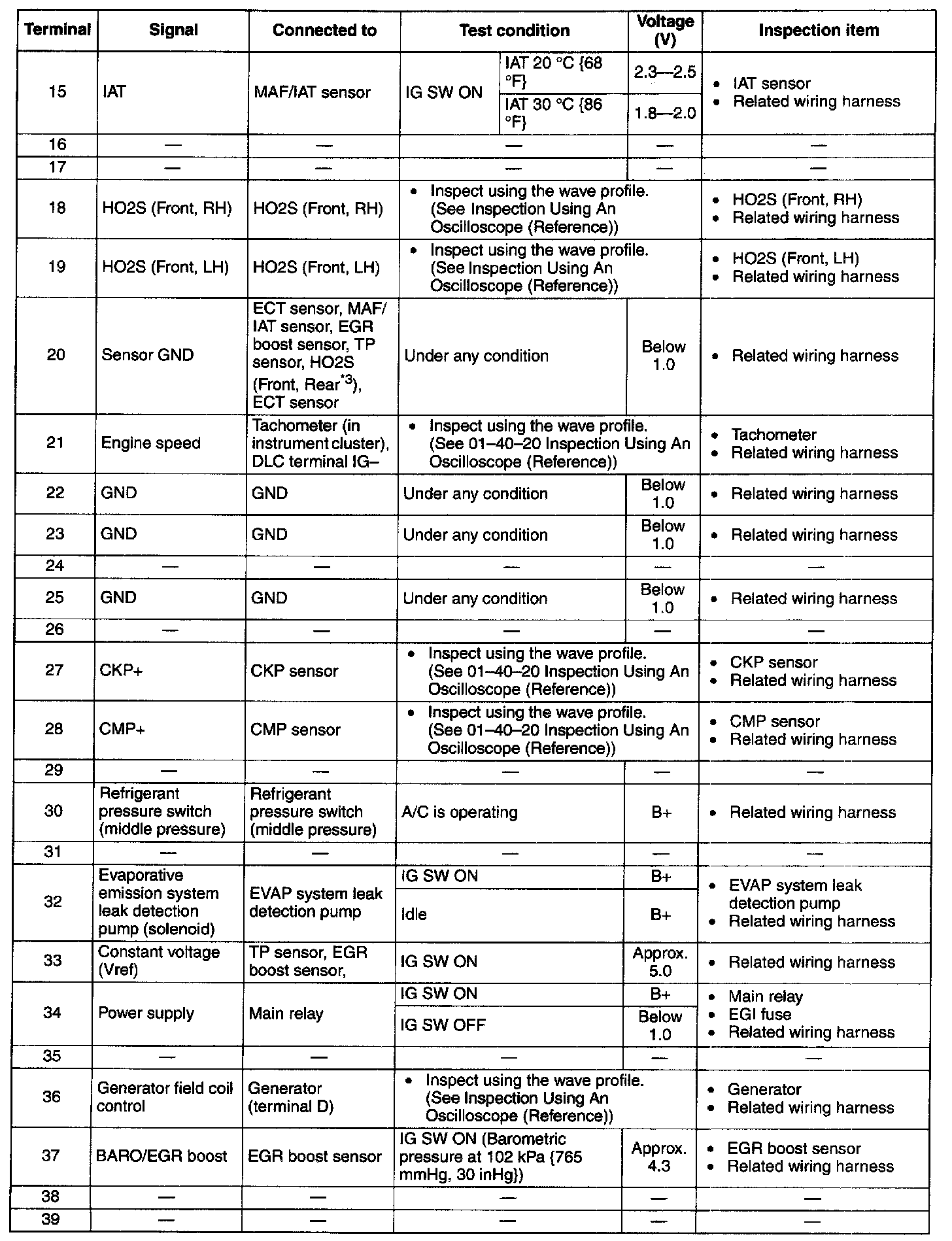 Terminal Voltage Table (Reference) - Terminals (15 - 39):