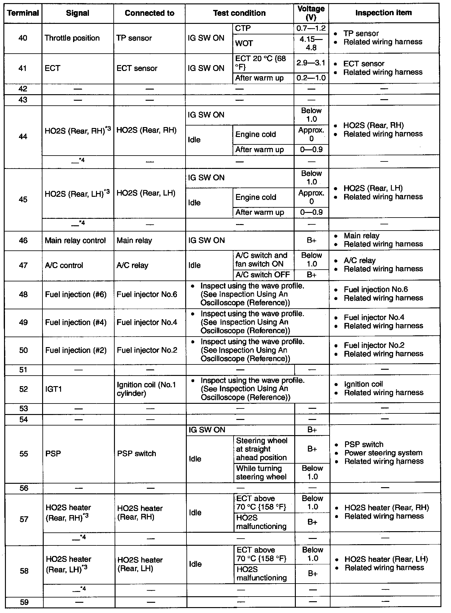 Terminal Voltage Table (Reference) - Terminals (40 - 59):