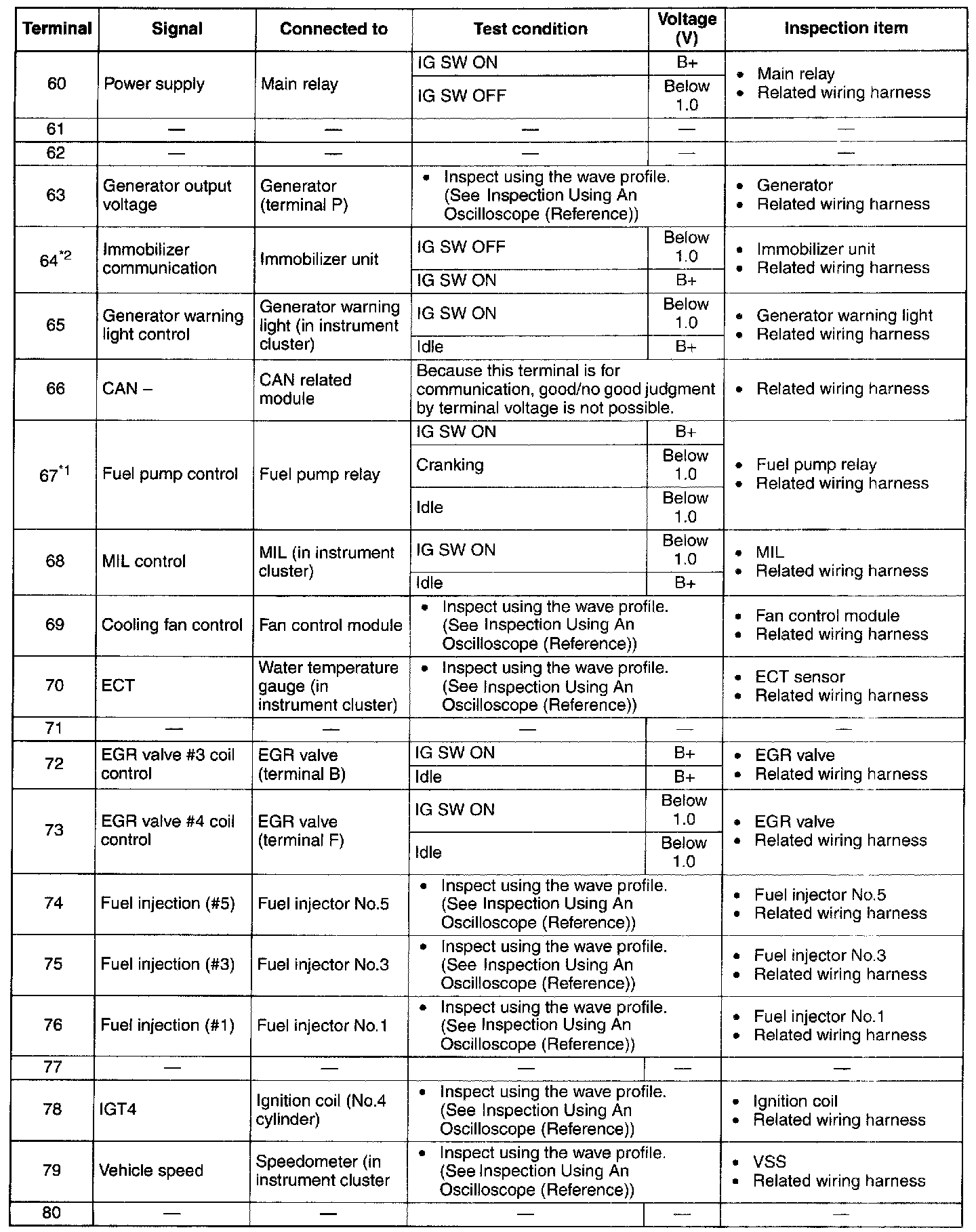 Terminal Voltage Table (Reference) - Terminals (60 - 80):