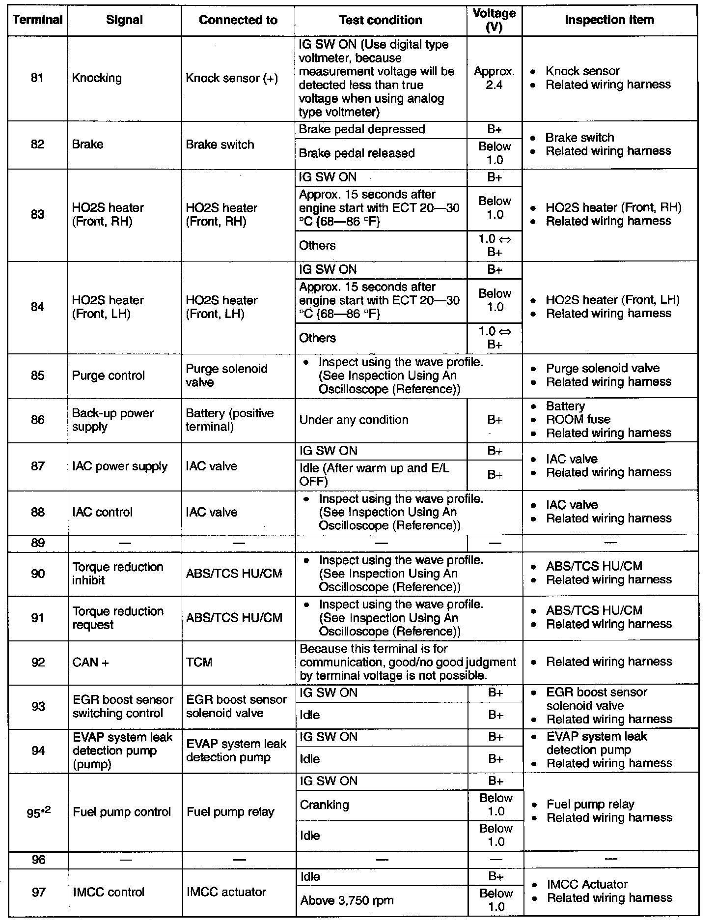 Terminal Voltage Table (Reference) - Terminals (81 - 97):