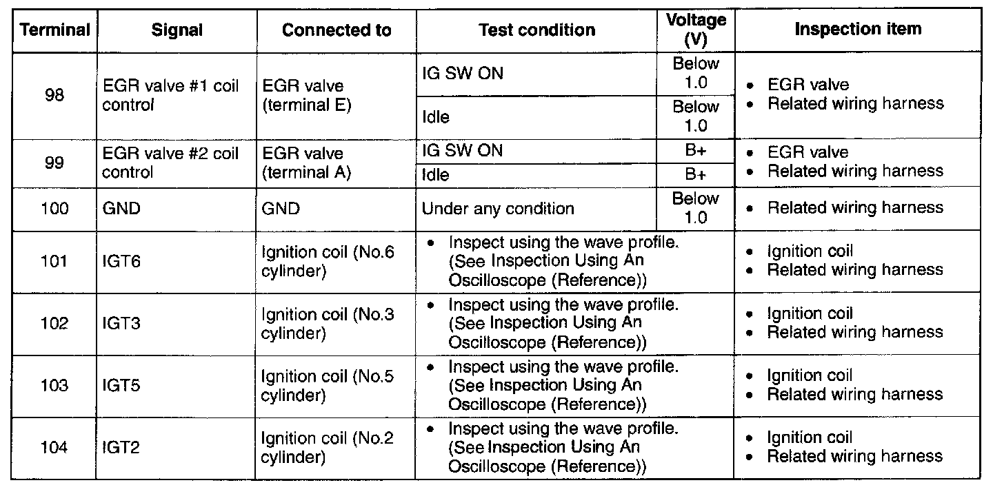 Terminal Voltage Table (Reference) - Terminals (98 - 104):