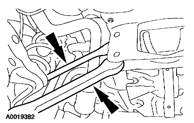 2. With a 19 mm (0.76 in) rod, align the rear subframe with the alignment holes.