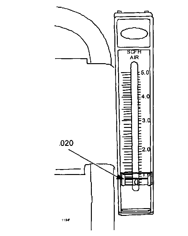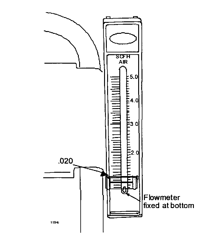 e. Observe the flow meter indicator ball. Position the flow meter flag so it aligns with the center of the indicator ball.