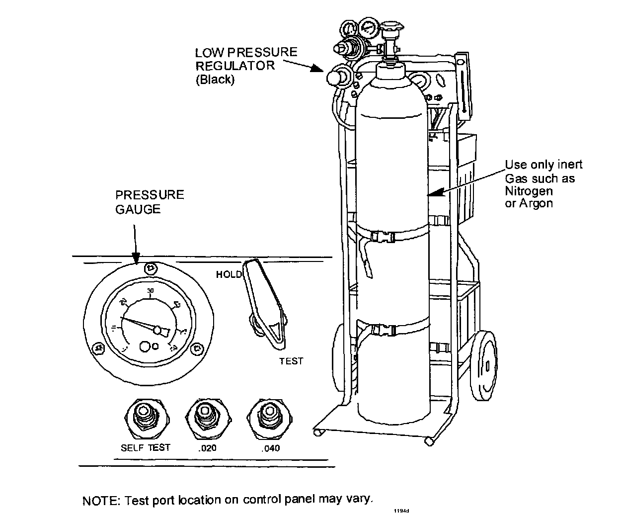 ^ Verify there is enough pressure in the gas bottle (only use inert gas such as Nitrogen or Argon) to perform testing (More than 670 kpa (100 psi)).