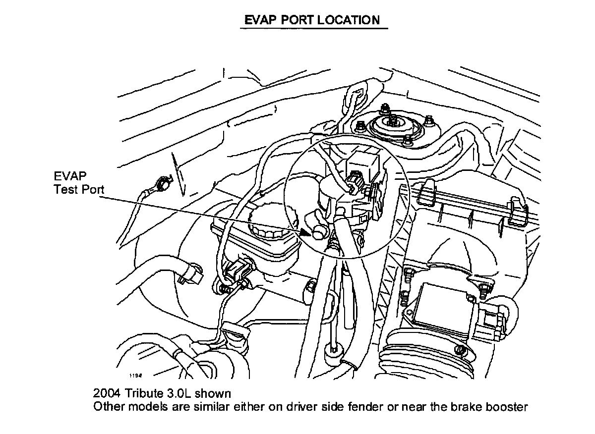Be careful when connecting the EVAP tester hose. On B-Series Trucks it is easy to cross thread due to the angle of the test fitting. On Tribute 2.3L be careful to route the EVAP tester hose so it does not contact the exhaust.