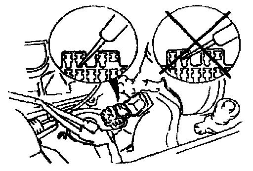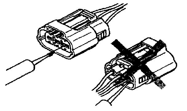 - When a tester is used for checking continuity or measuring voltage, insert the tester probe from the wiring harness side.