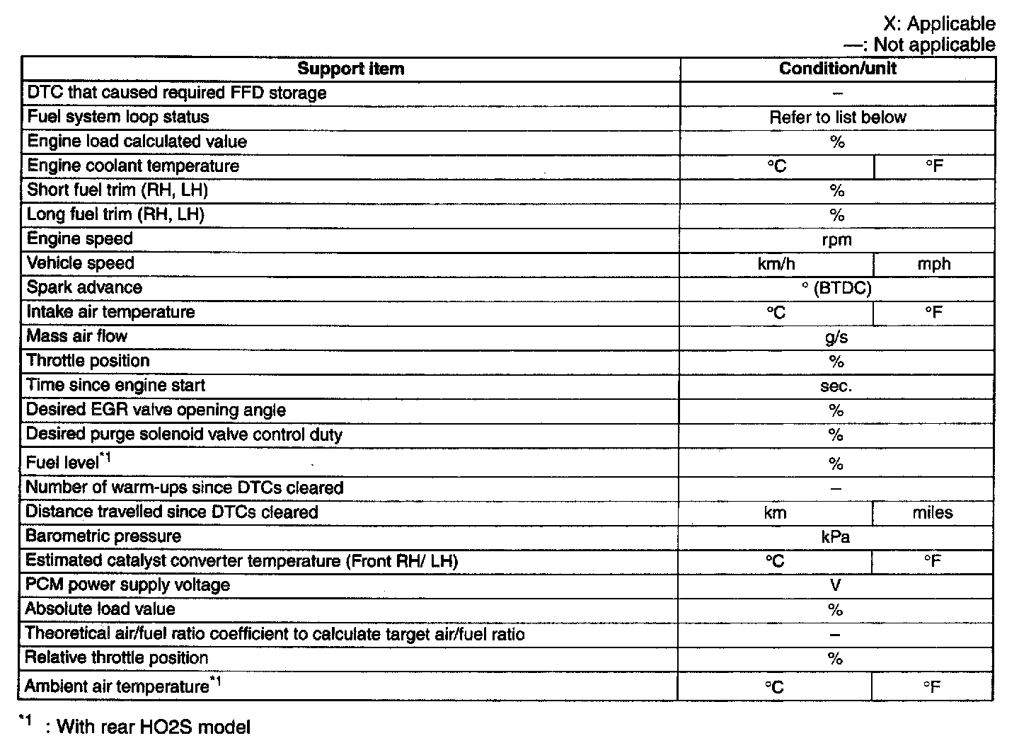 Freeze Frame Data Monitor Table:
