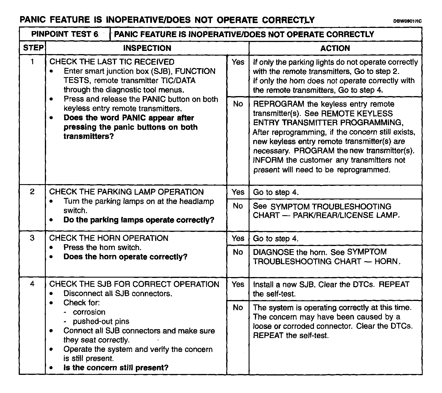Panic Feature Is Inoperative/Does Not Operate Correctly