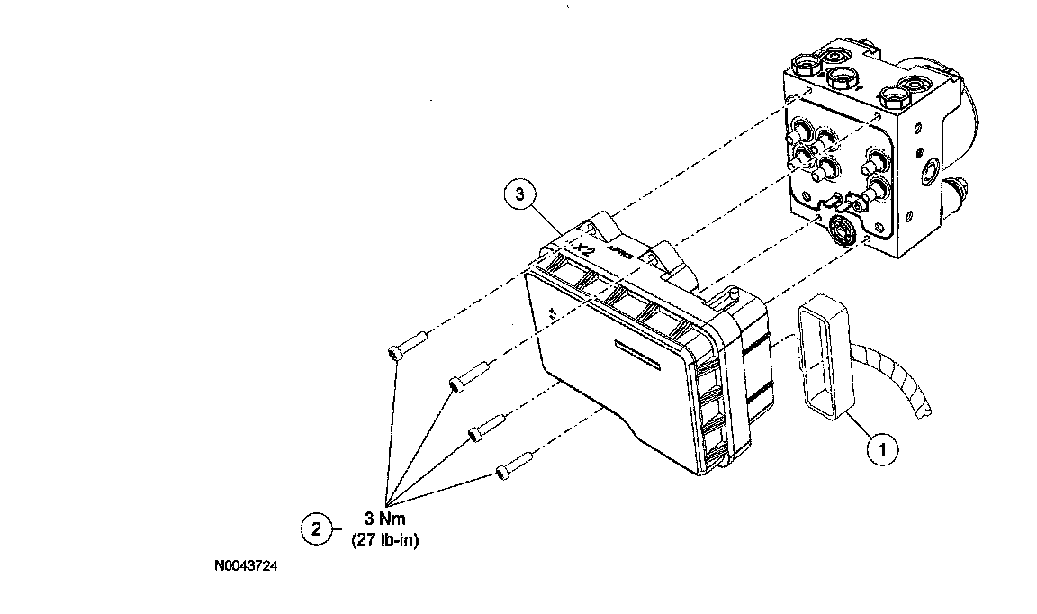 ^ A new seal kit must be used when installing the ABS module. The old seals must be discarded as they may cause a leak between the ABS module and the HCU.