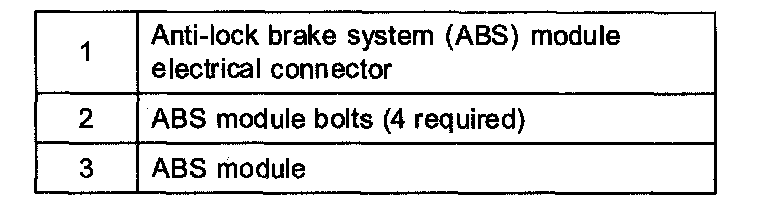 ^ The anti-lock brake system (ABS) module bolts must be removed and installed in the sequence shown.