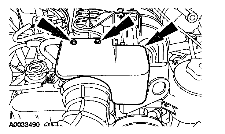 - Depress the tabs and separate the cruise control cable from the intake manifold.