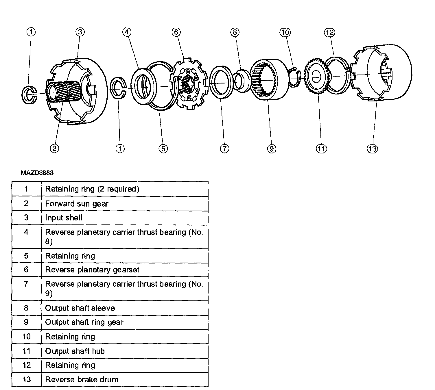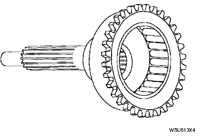 ^ The pinions of the reverse planetary gearset drive the output shaft ring gear and output shaft hub which is splined to the output shaft.