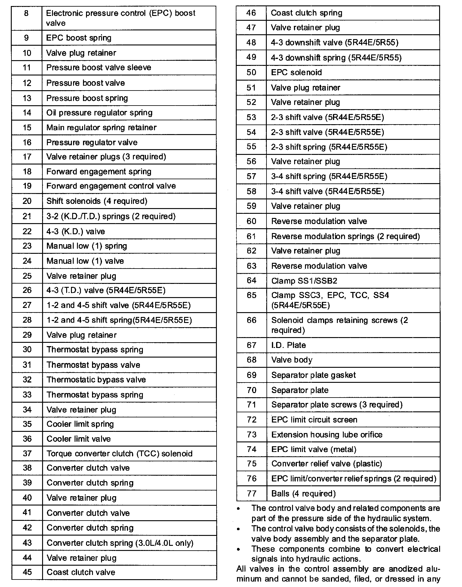 ^ The control valve-body consists of the solenoids, the valve body assembly and the separator plate.