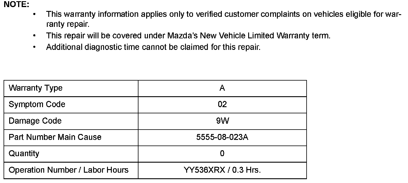 The PCM Calibration Part Numbers listed above are provided for PCM reprogramming purposes only. These are not necessarily the same Mazda part numbers used to order an actual PCM through the Mazda Parts System. It is not necessary to order a PCM as part of this repair procedure.