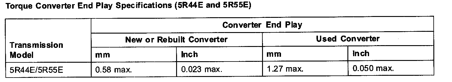 Torque Converter End Play Specifications (5R55E 5R44E):