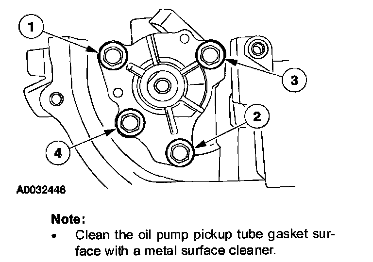 Oil pump torque and sequenceInstall a new gasket and the oil pump assembly. Tighten the bolts in the sequence shown in two stages.