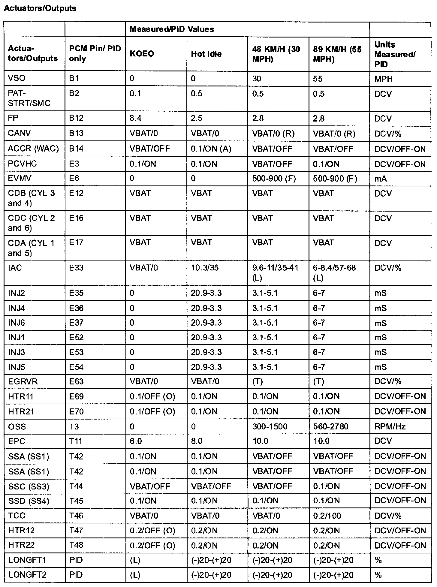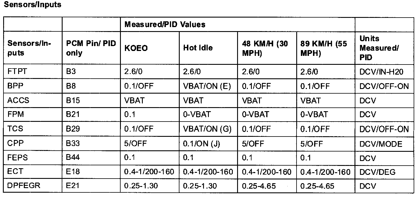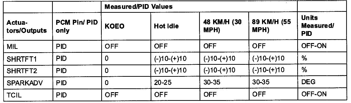 PID/DATA MONITOR ITEM TABLE