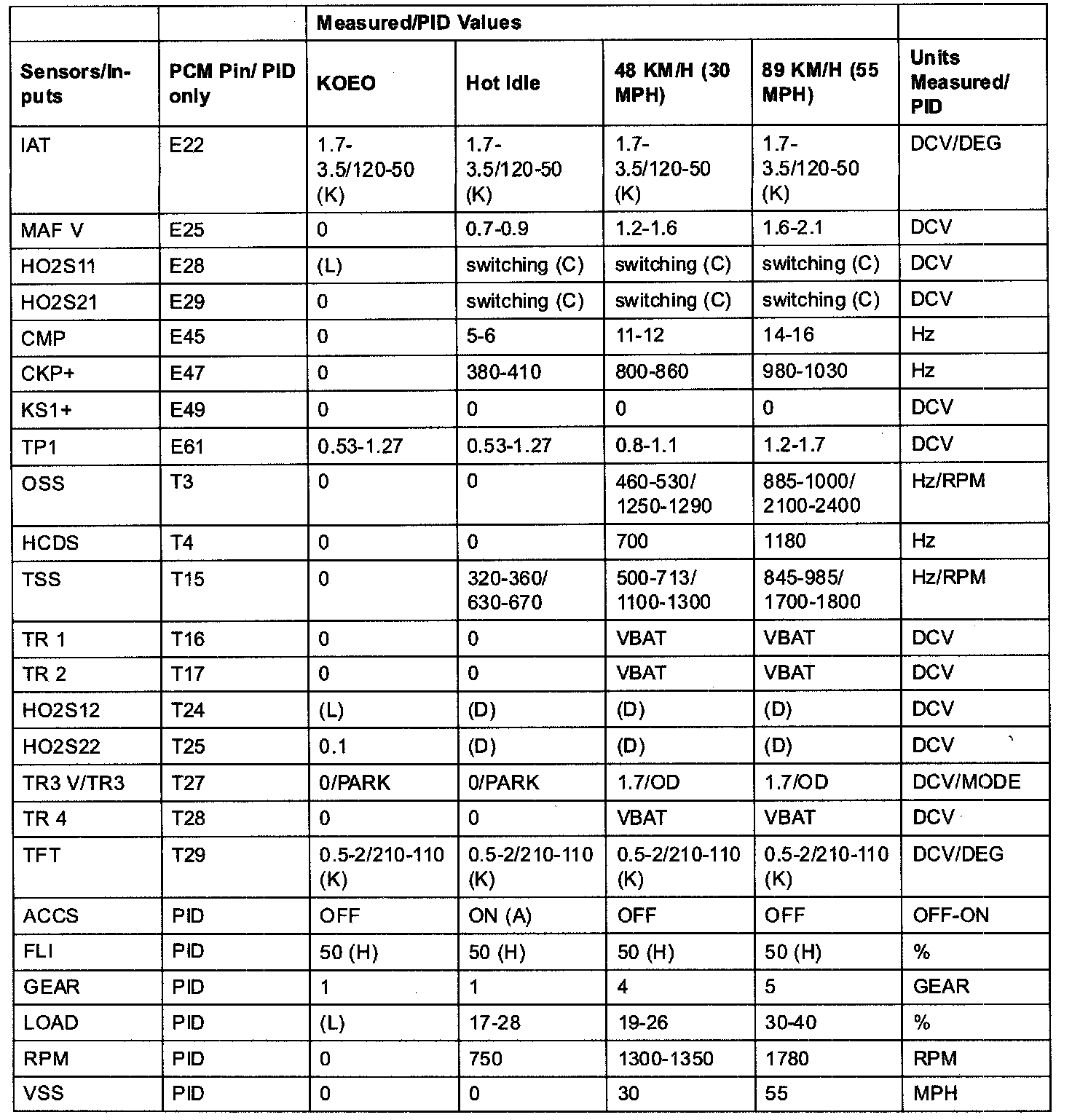 PID/Data Monitor Item Table 2