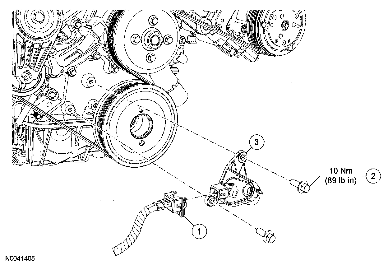 NOTE: The new CKP sensor must be touching the damper. The new sensor has wear tabs that will wear off after several engine revolutions.