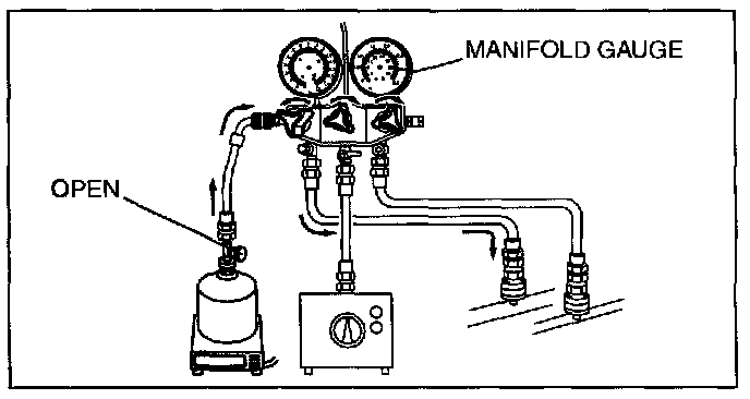 1. Open all the valves of the manifold gauge.