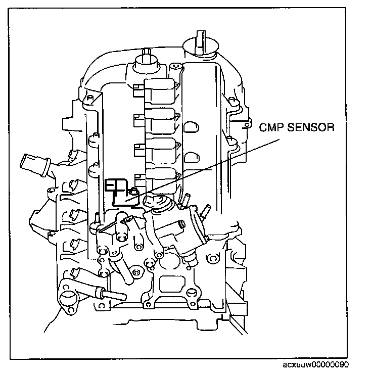 CAMSHAFT POSITION (CMP) SENSOR REMOVAL/INSTALLATION[L3 WITH TC)CAUTION: When replacing the CMP sensor, make sure there is no foreign material on it such as metal shavings. If it is installed with foreign material, the sensor output signal will malfunction resulting from fluctuation in magnetic flux and cause a deterioration in engine control.