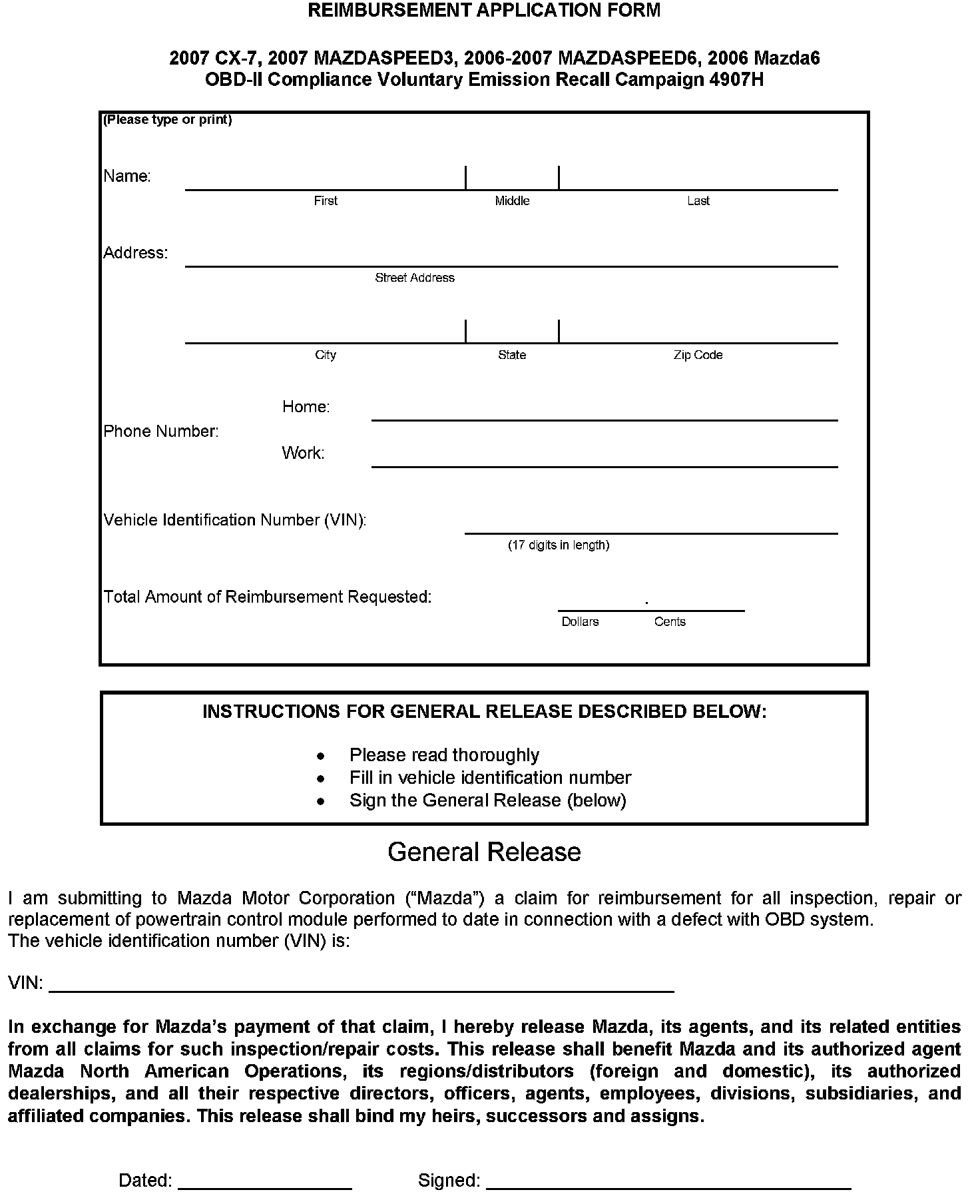 Reimbursement Plan/Application Form