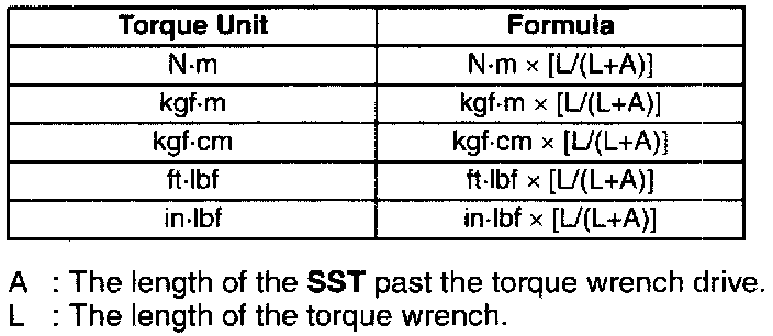 - When using a torque wrench-SST or equivalent combination, the specified torque must be recalculated due to the extra length that the SST or equivalent adds to the torque wrench. Recalculate the torque by using the following formulas. Choose the formula that applies to you.