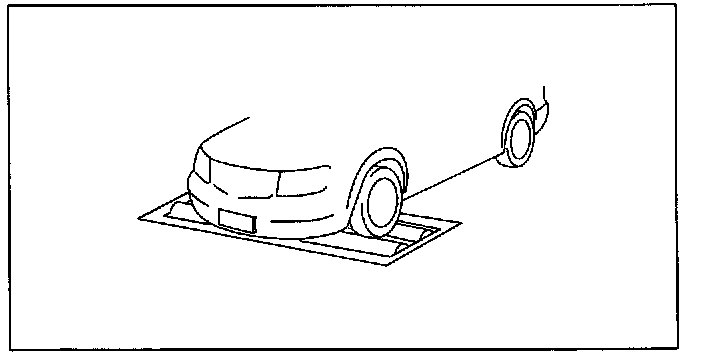 2. Support the wheels (front or rear) on the side to be measured (near the wheels) using a wheel balancer sensor stand.