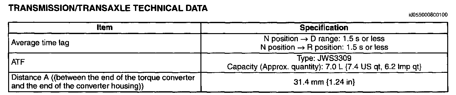 Transmission/Transaxle Technical Data