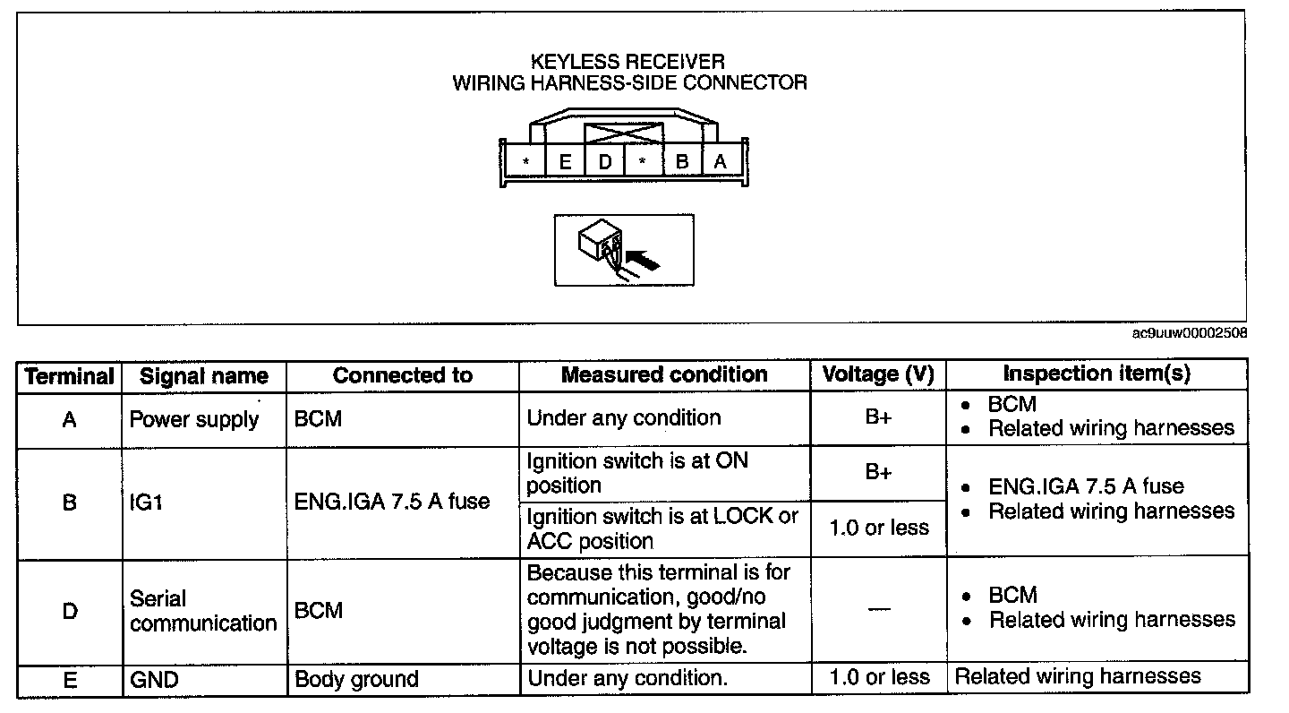 KEYLESS RECEIVER INSPECTION [KEYLESS ENTRY SYSTEM)