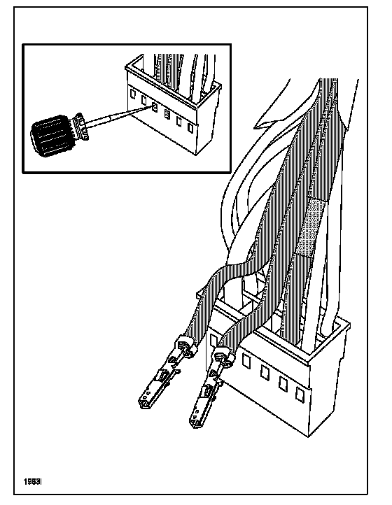 l. Using a scratch awl tool, carefully bend down the terminal retaining tabs to remove these wires (1, 2) from the 10-pin connector.