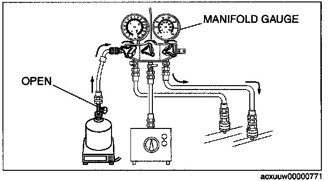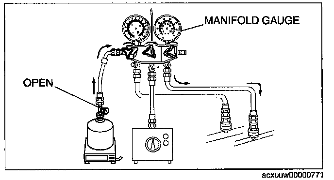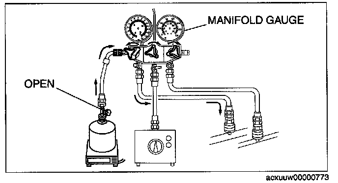 1. Open all the valves of the manifold gauge.