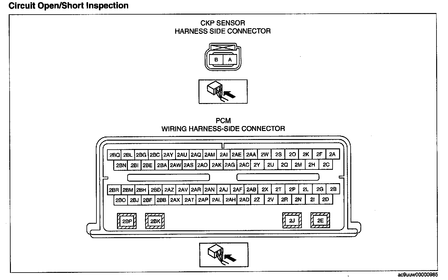 - CKP sensor terminal A and PCM terminal 2P