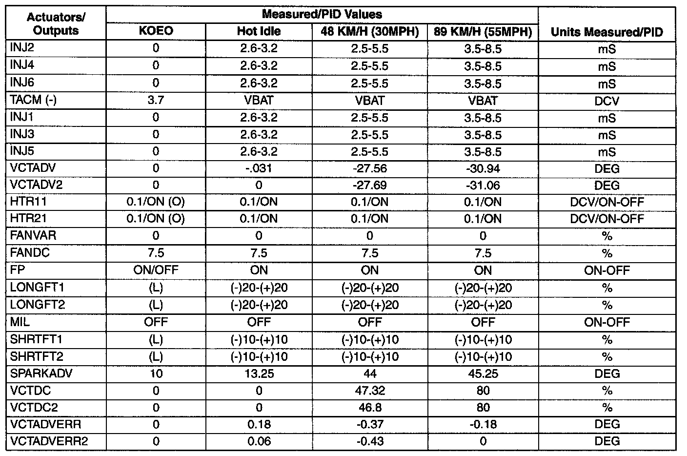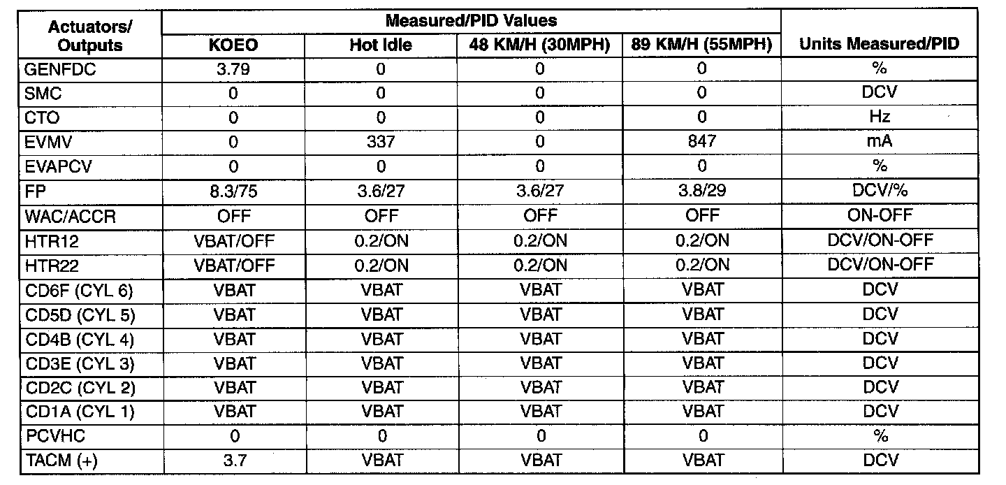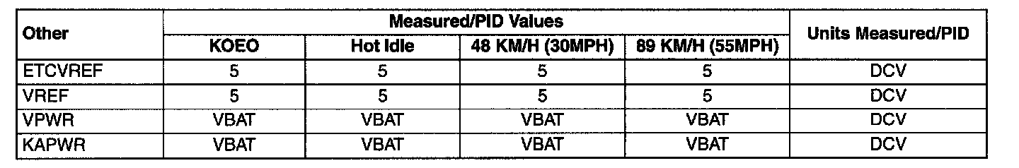 Pinout Values and Diagnostic Parameters