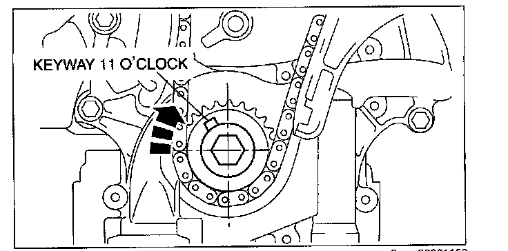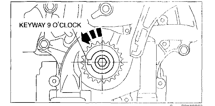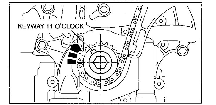 1. Turn the crankshaft clockwise so that the crankshaft keyway is in the 11 o'clock position. (This will position the No.1 cylinder at TDC.)