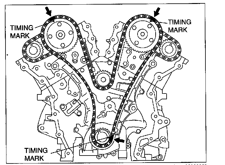 ^ When removing the timing chain and marking the timing marks on the chain, mark the camshaft timing chain as well.