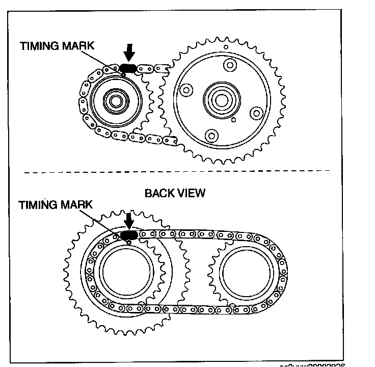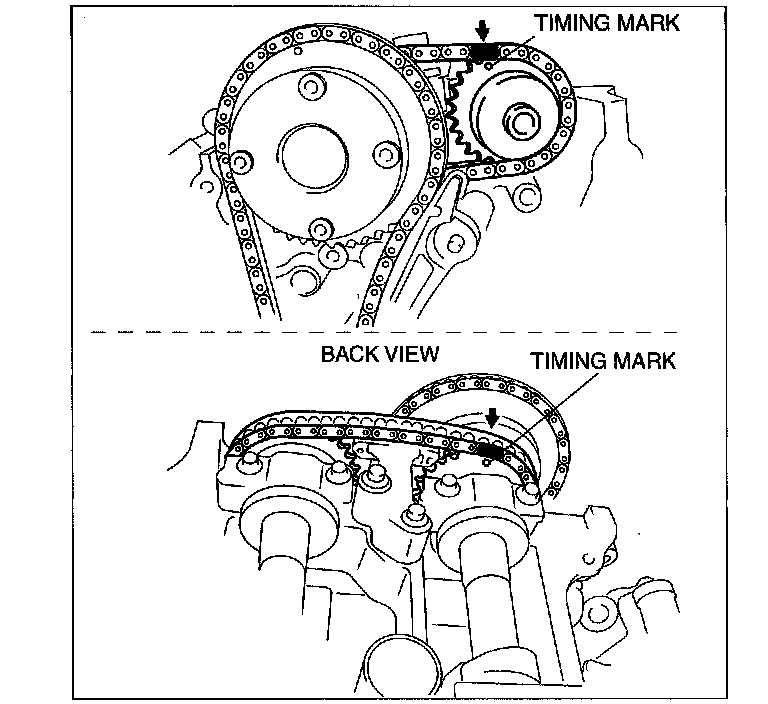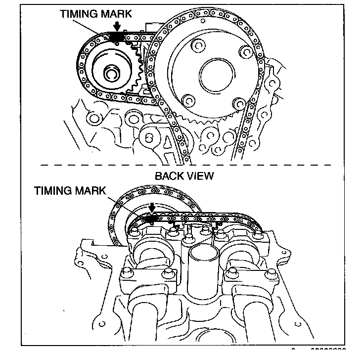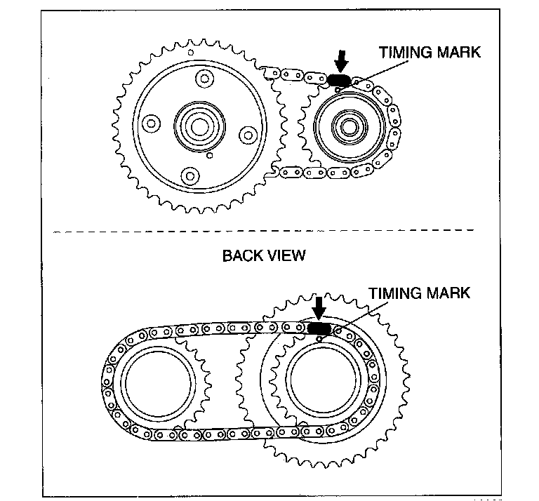 2. Mark the timing chain at the position of each timing sprocket timing mark.