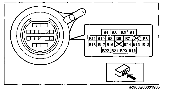 5. Verify that there is continuity between coupler component terminals B19 and B20.