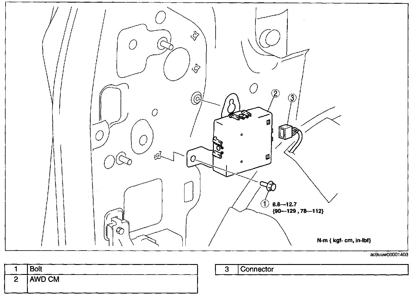AWD CONTROL MODULE REMOVAL/INSTALLATION1. Disconnect the negative battery cable.