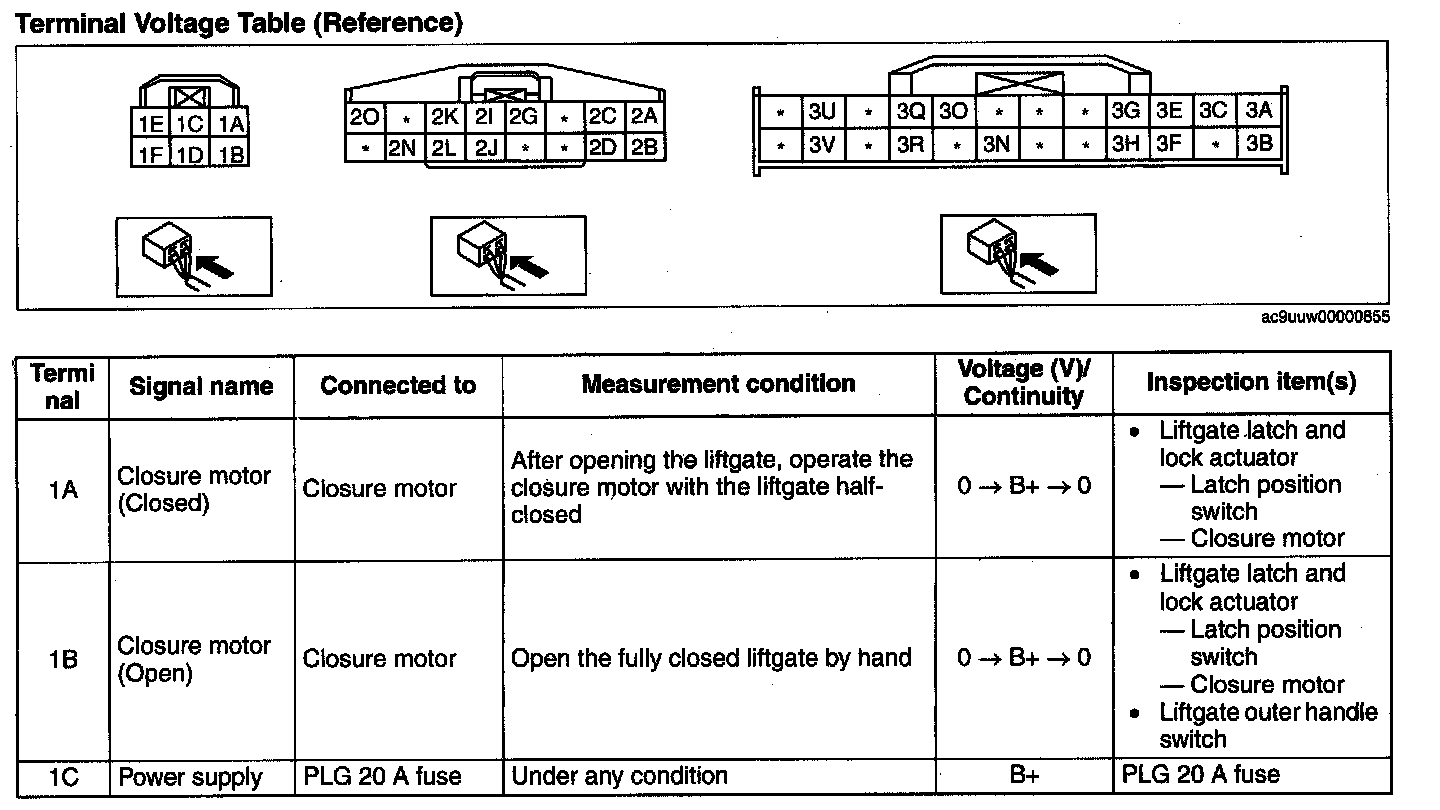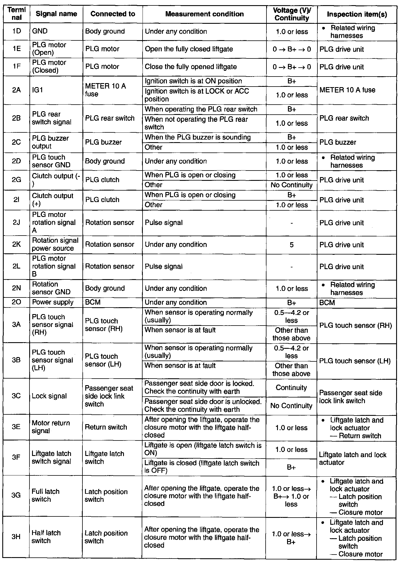 POWER LIFTGATE (PLG) CONTROL MODULE INSPECTION1. Measure the PLG control module terminal voltage.